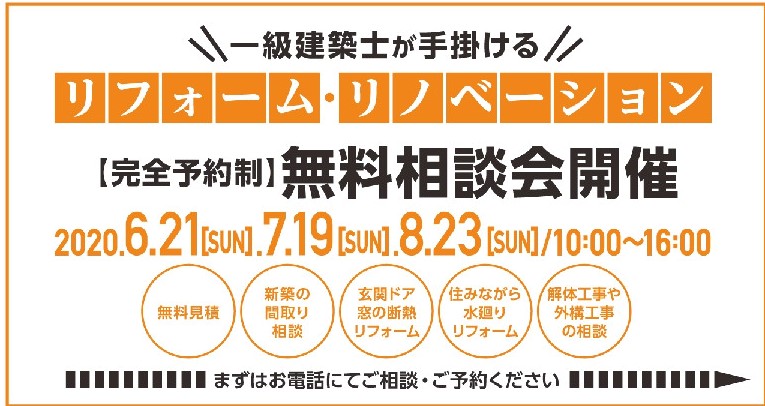 一級建築士が手掛けるリフォーム無料相談会 2020夏