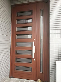 玄関ドアは、シートを貼り直して新品同様のきれいな見た目になりました。